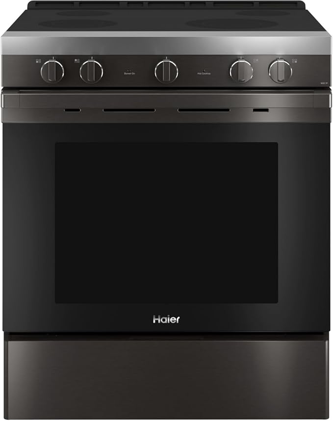Haier QSS740BNTS 30"" Smart Freestanding Electric Range with 4 Radiant Elements 5.7 cu. ft. Capacity WiFi Connection and Hidden Bake Element in Black Stainless Steel