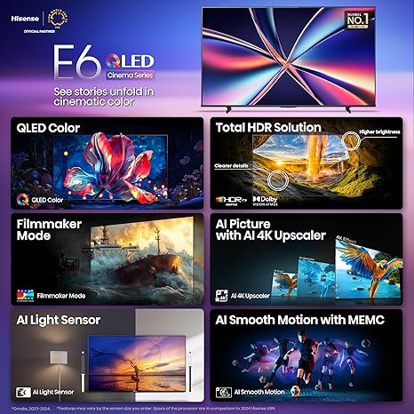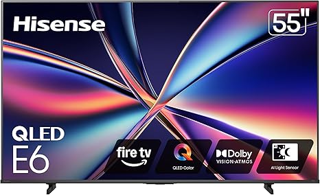 Hisense 55" Class E6 Series QLED 4K UHD Smart Fire TV (55E6QF, 2025 Model) - QLED, AI Light Sensor, Dolby Vision · Atmos, Voice Remote with Alexa, Motion Rate 120, HDR 10+ Adaptive, Game Mode Plus