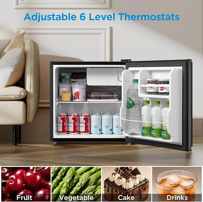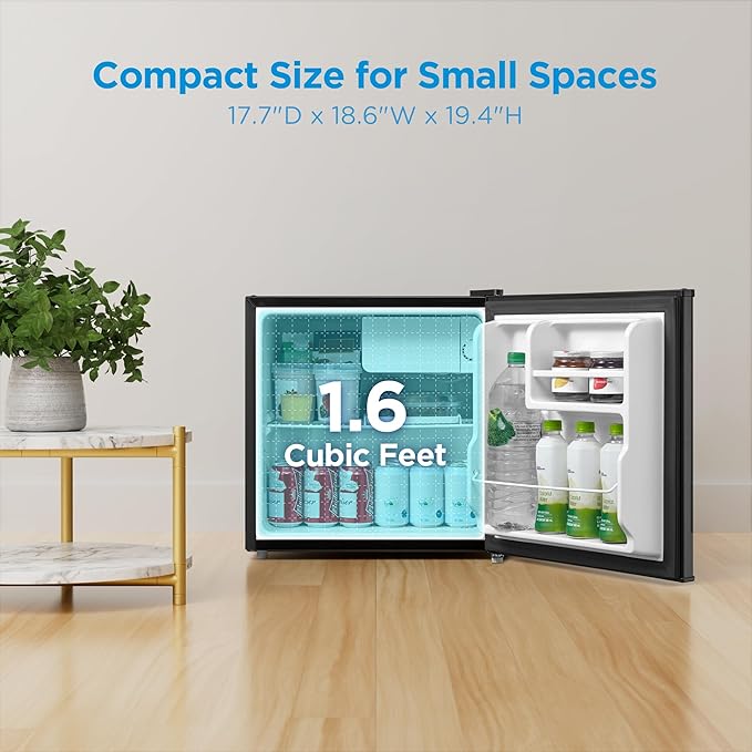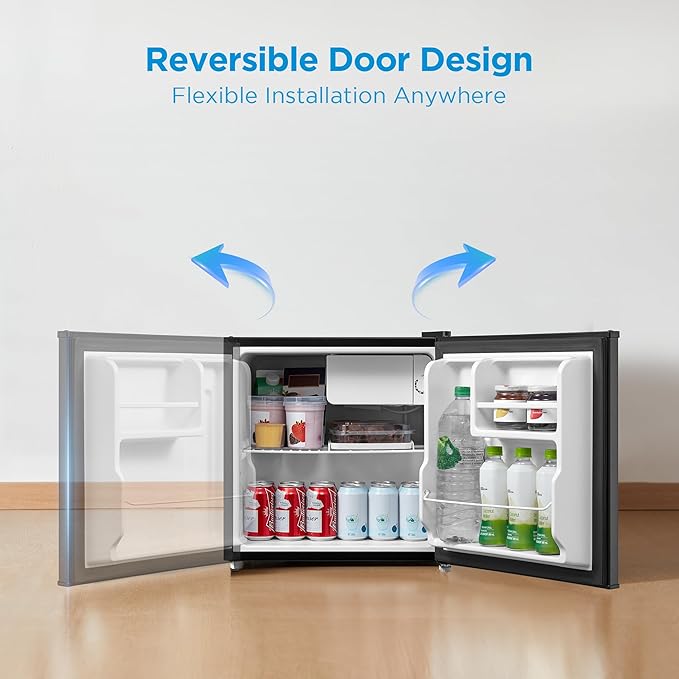 Midea WHS-65LB1 Compact Single Reversible Door Refrigerator, 1.6 Cubic Feet(0.045 Cubic Meter), Black