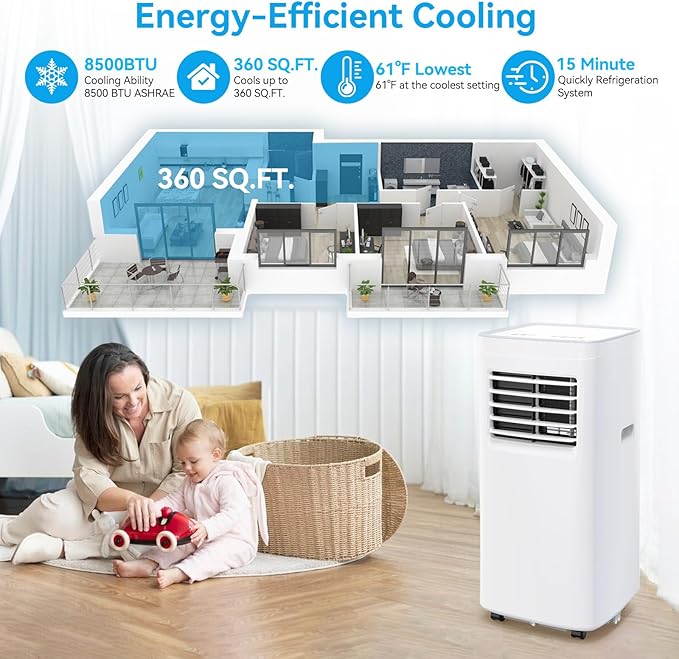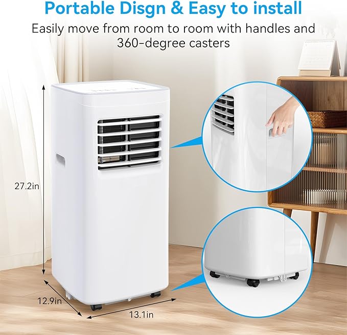 Portable Air Conditioners,8500 BTU portable ac up to 360 Sq,3 IN 1 with Remote Control,Sleep Mode, Windows kit,White